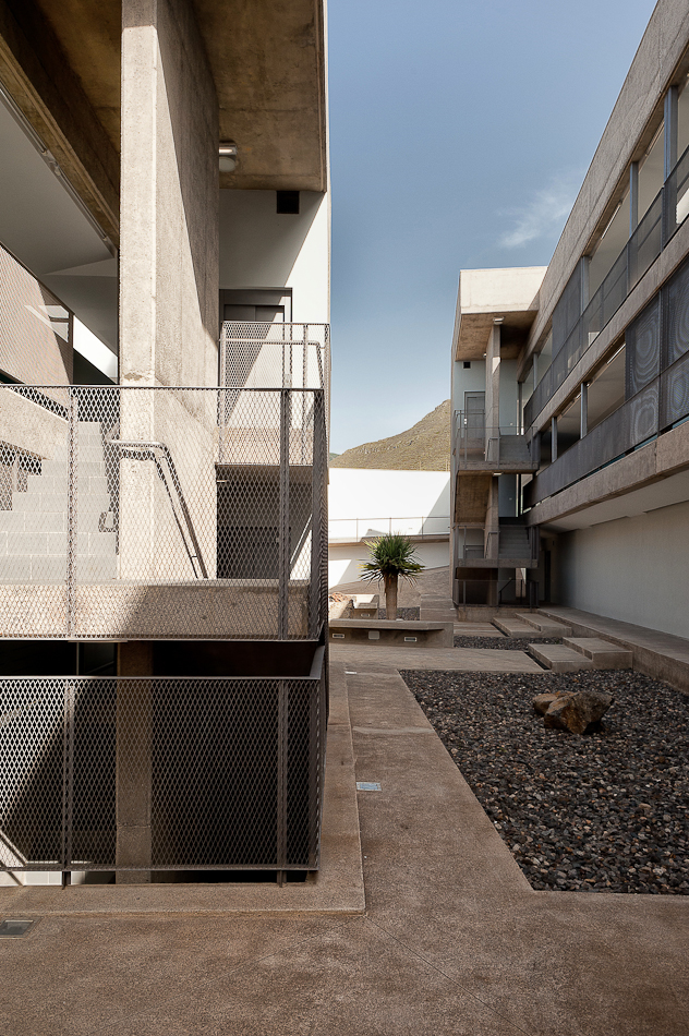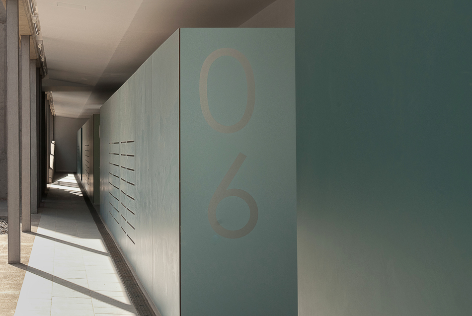En contraposición se crea en el interior del patio un mundo de colores generado con los cerramientos de las terrazas que se prevén, que junto con la luz y los jardines configuran un paisaje particular donde se desarrollan las circulaciones y accesos a las viviendas.